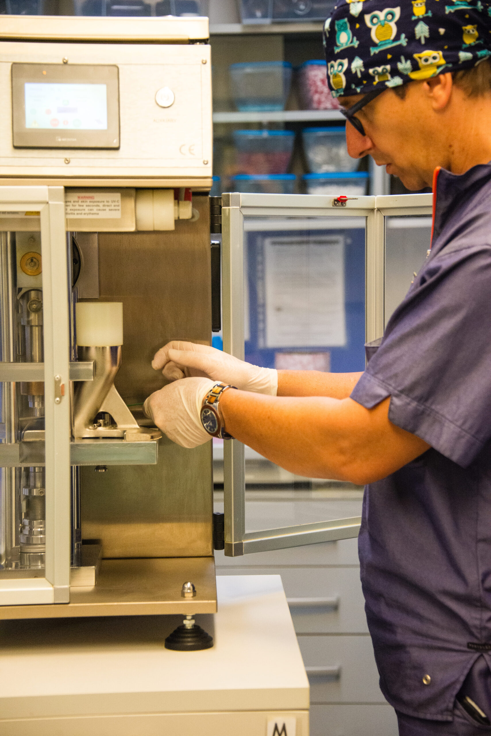 Il nostro laboratorio unisce l’arte artigianale alla scienza farmacologica per creare soluzioni personalizzate e vanta macchinari all’avanguardia come la comprimitrice automatizzata, che oltre a rendere più preciso ancora il lavoro del farmacista preparatore, rende possibile allestire formazioni farmaceutiche più pratiche quali compresse, compresse orosolubili e addirittura gomme da masticare.